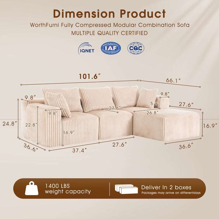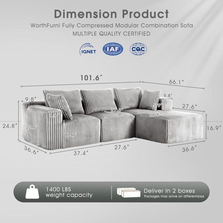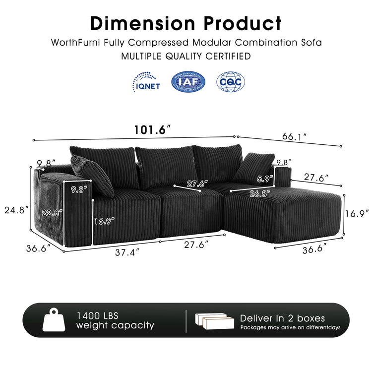 IHanherry 102" Comfy Modular Sofa With Chaise