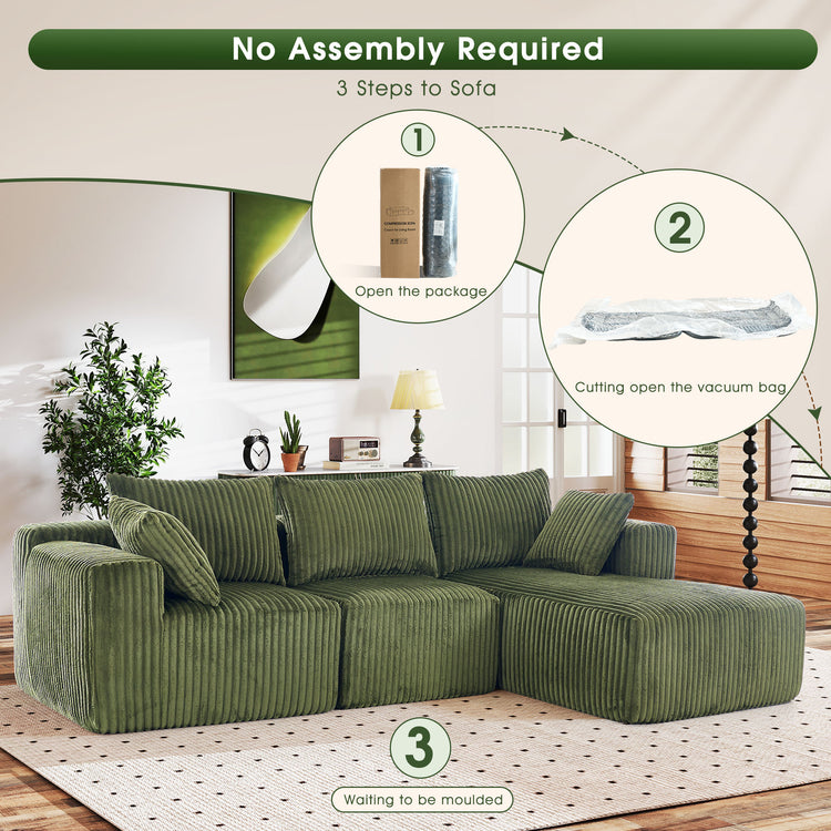Unbox, and you’re ready to go! This sofa arrives ready for use, with no assembly required. It’s been compressed for easy transportation, making it hassle-free to move into your home. Simply unpack and enjoy!