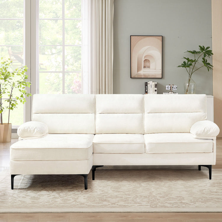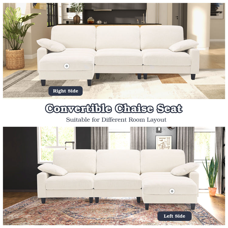 The reversible chaise allows for flexible placement on either side of the sofa, offering versatility to fit any room layout.