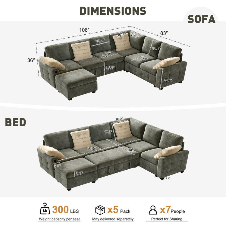 7 Seat Sleeper: 23"D x 106"W x 36"H