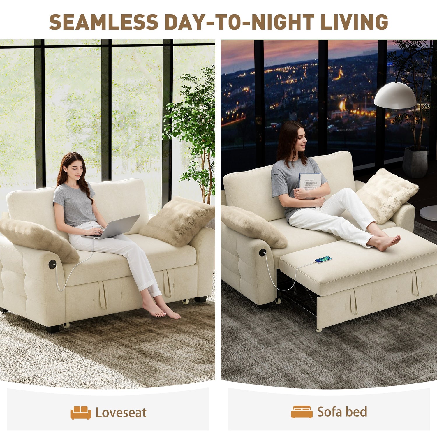 The sofa easily converts into a comfortable bed with a smooth pull-out design, making it ideal for overnight guests or extended lounging.