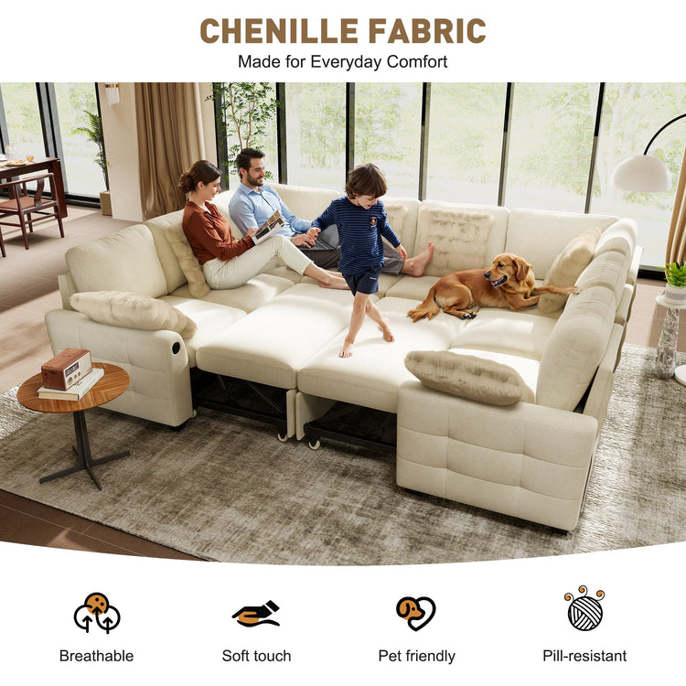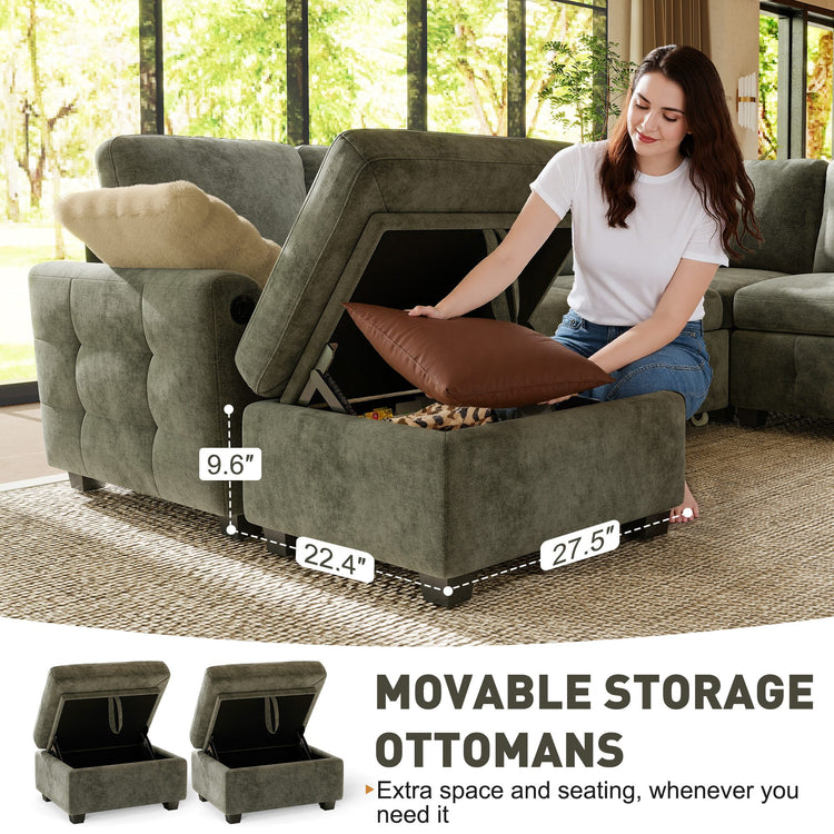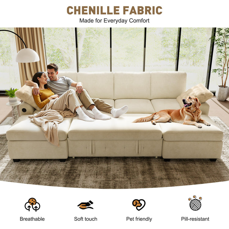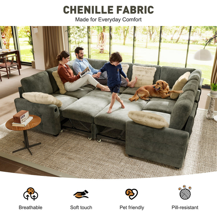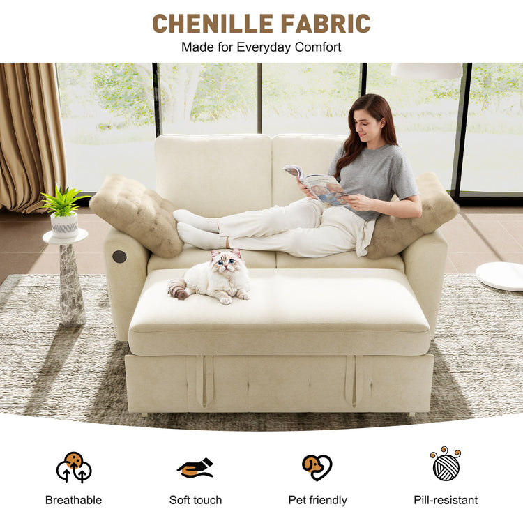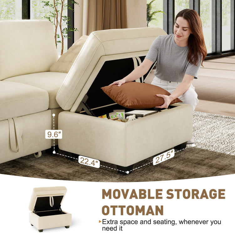 IHanherry Chenille Pull Out Sleeper Sofa with Storage Ottoman