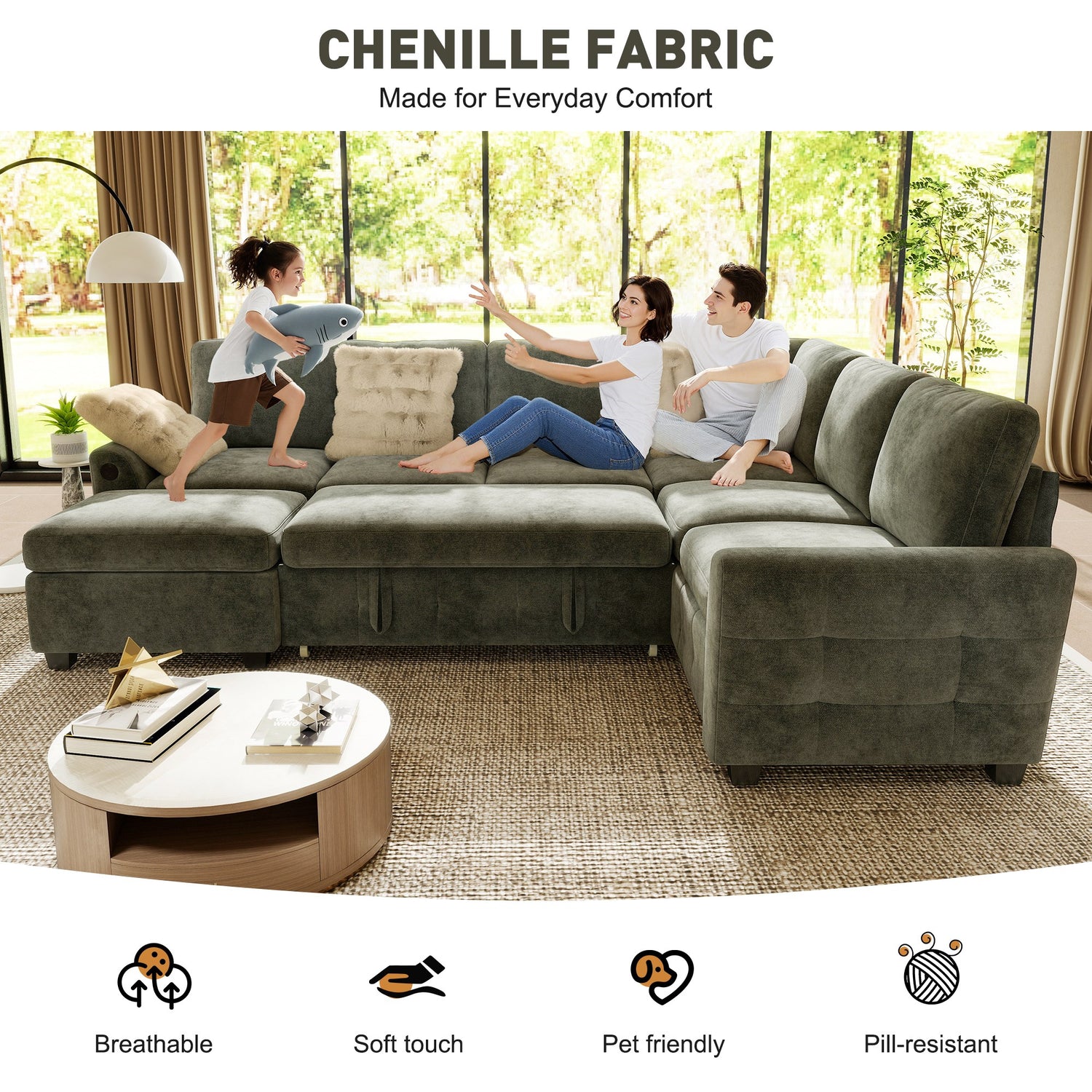 High-quality chenille fabric, breathable and durable;
