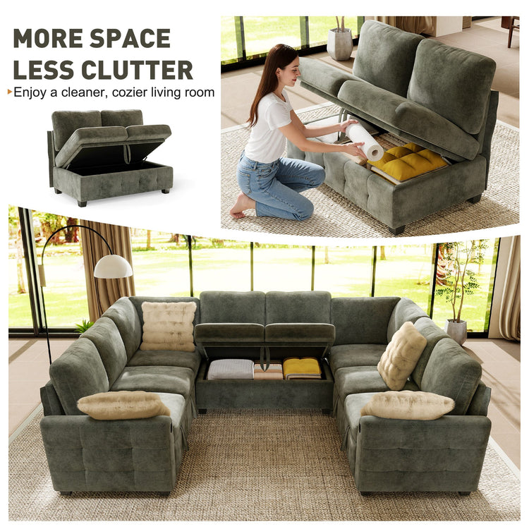 Featuring generously thickened cushions that are noticeably more substantial than standard sofas, this sectional delivers a perfect balance of softness and structure. High-density foam filling offers excellent resilience, helping the cushions maintain their shape and comfort over time—no sagging, no flattening, just consistent support you can feel every time you sit or lie down.